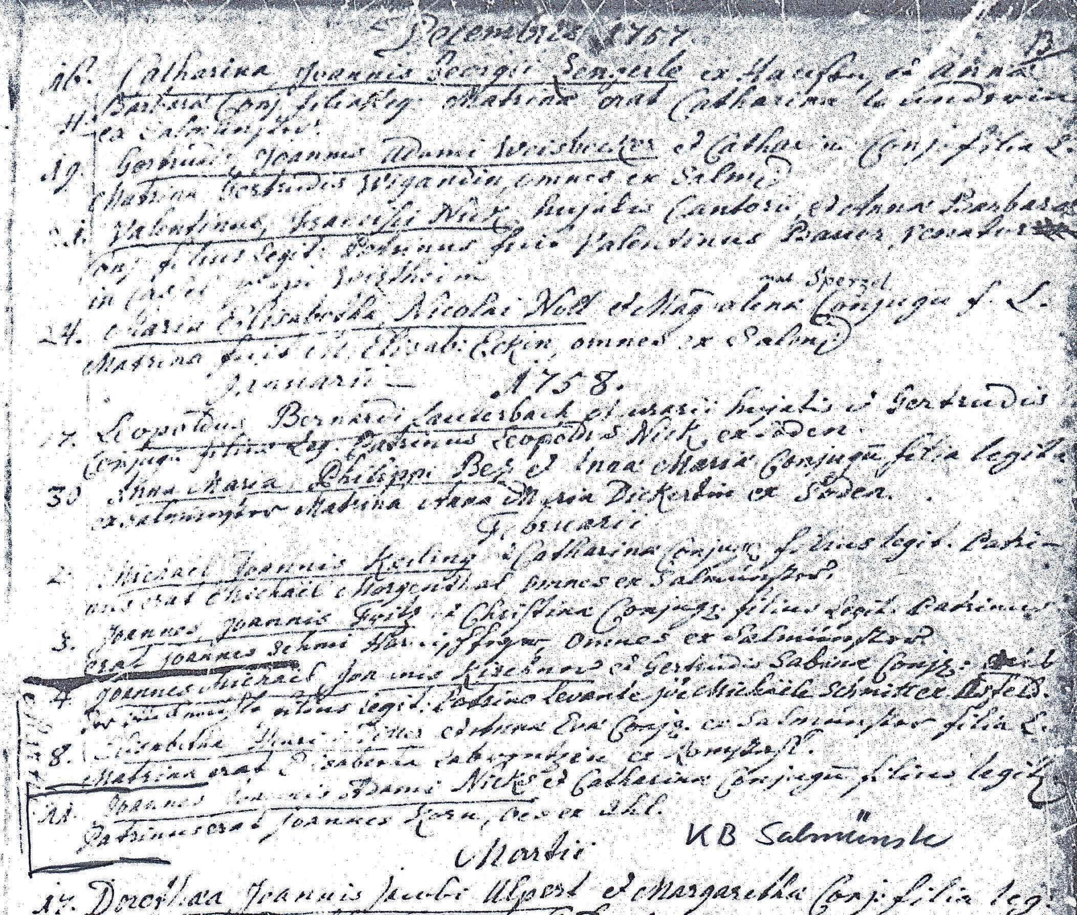 | 20 NIX, Adam 1.4.1725 Ahl m. 12.8.1748 Ahl 21 LEINEWEBER, Catharina * 20.12.1724 Ahl |