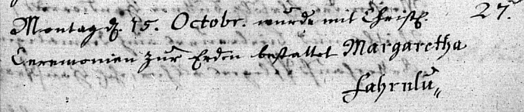 | Death:1748 Aug 1, Frimmersdorf Johannes Fahrenlucher,farmer Age at Death:59 years, four months, two weeks, and two days Calculates birth as 3/16/1689 |