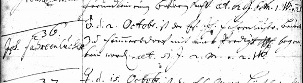 | 1691 d. 15. Juli Johann Fahrnluger zu Frömmersdorff und seinem Ehw. Catharina ein Söhnlein getaufft worden, war gevatter Johann Schoring, Mühlknecht zu Fetzelhofen, Johann Schörings Seel. gewesenen Müllers und Hochfürstl. Brandenburgischen Vogt alhier zu Lonnerstatt eheleiblicher hinterlaßener Sohn. Filius Johannes On 15 July Johann Fahrnluger in Frimmersdorf and his wife Catharina, baptized a little son. The sponsor was Johann Schoring, mill worker in Fetzelhofen, legitimate son of the deceased Johann Schöring, former miller here and mayor of the Brandenburg principality in Lonnerstadt. Son Johannes |