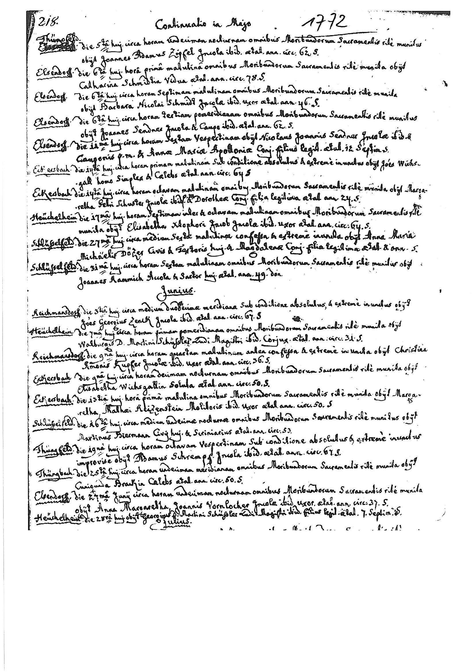 | Marriage Date Marriage Place Groom Given & Surname Groom Home Town Groom Father's Name 1754 Feb 5 Lonnerstadt Johann Fahrnlucher Elzendorf Johann Fahrnlucher, deceased farmer in Frömmersdorf - eldest son. The groom is now the stepson of Conrad Klöpffer, farmer in Frimmersdorf. Bride Given & Surname Bride's Home Town Bride Father's Name Anna Margaretha Hering Elzendorf Johann Georg Hering, deceased farmer - youngest daughter |