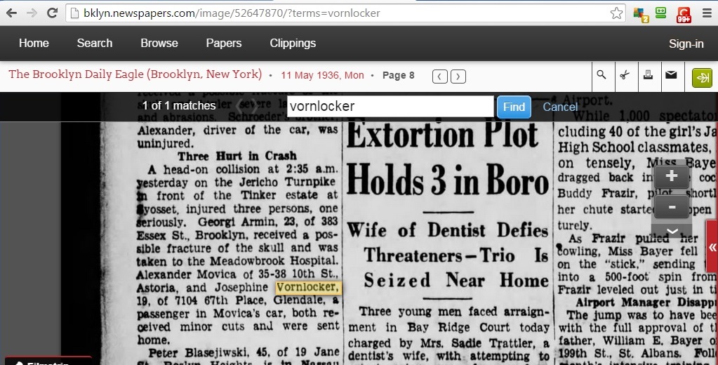 | MAVICA—VORNLOCKER Josephine Vornlocker, daughter of Mrs. John Vornlocker of 68-14 65th place, Glendale, was wed yesterday to Alexander Mavica, son of Mr. and Mrs. Joseph Mavica of 35-38 10th street, Long Island City, at the rectory of St. Rita's R. C. Church, Astoria. A reception at the Mavica home followed the ceremony, after which the couple left on a Southern motor trip. They plan to live in Astoria. The bride wore white silk georgette and a finger tip veil. Her bouquet was of gardenia.Adrianna Mavica, sister of the bridegroom, was the sole attendant,and George Vornlocker, brother of the bride, was best man. |