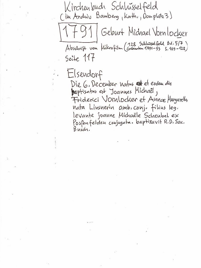 Quote from the original source document : Footnote : Hans Vornlocher Data/Birth John Michael Vrnlocher