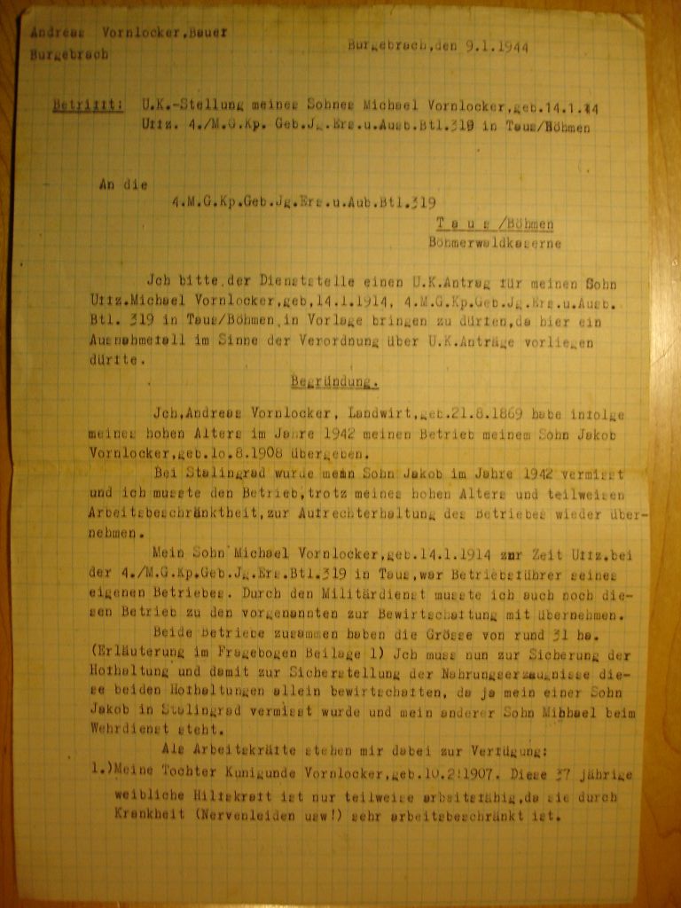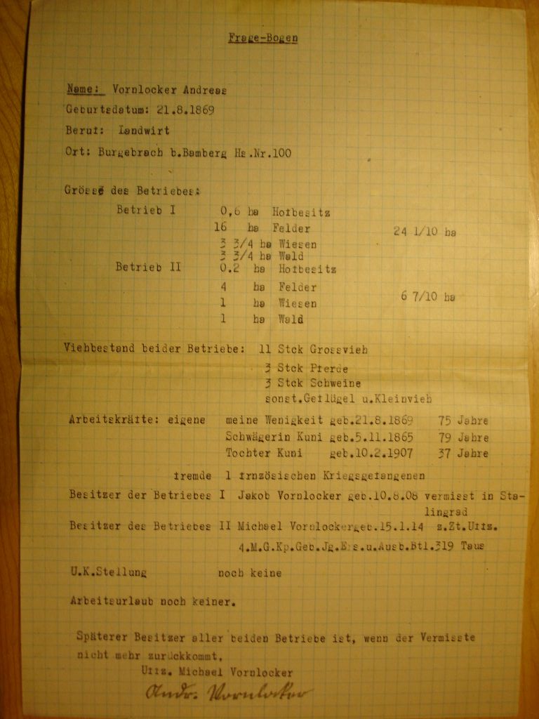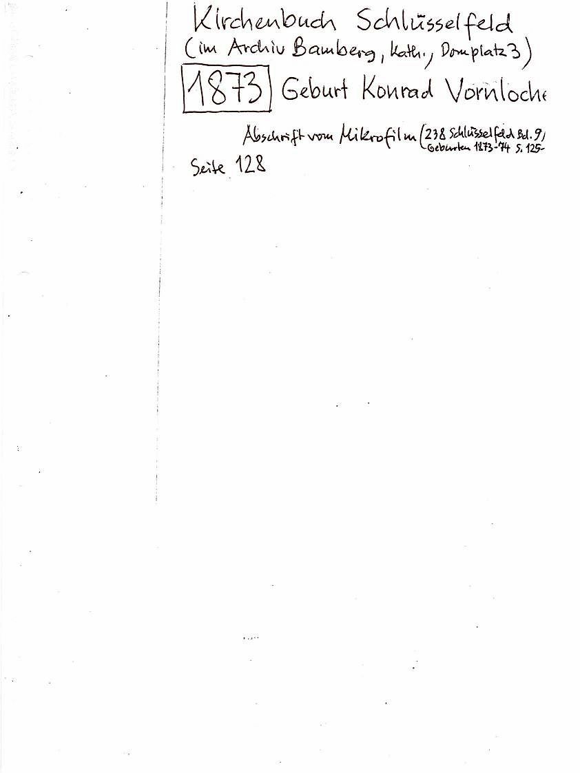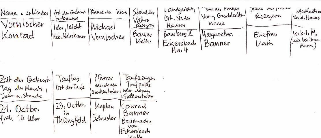 | Andreas Vornlocker was bon in Burgebrach on 21.08.1869 Father - Peter Vornlocker Mother - Barbara Baier |
