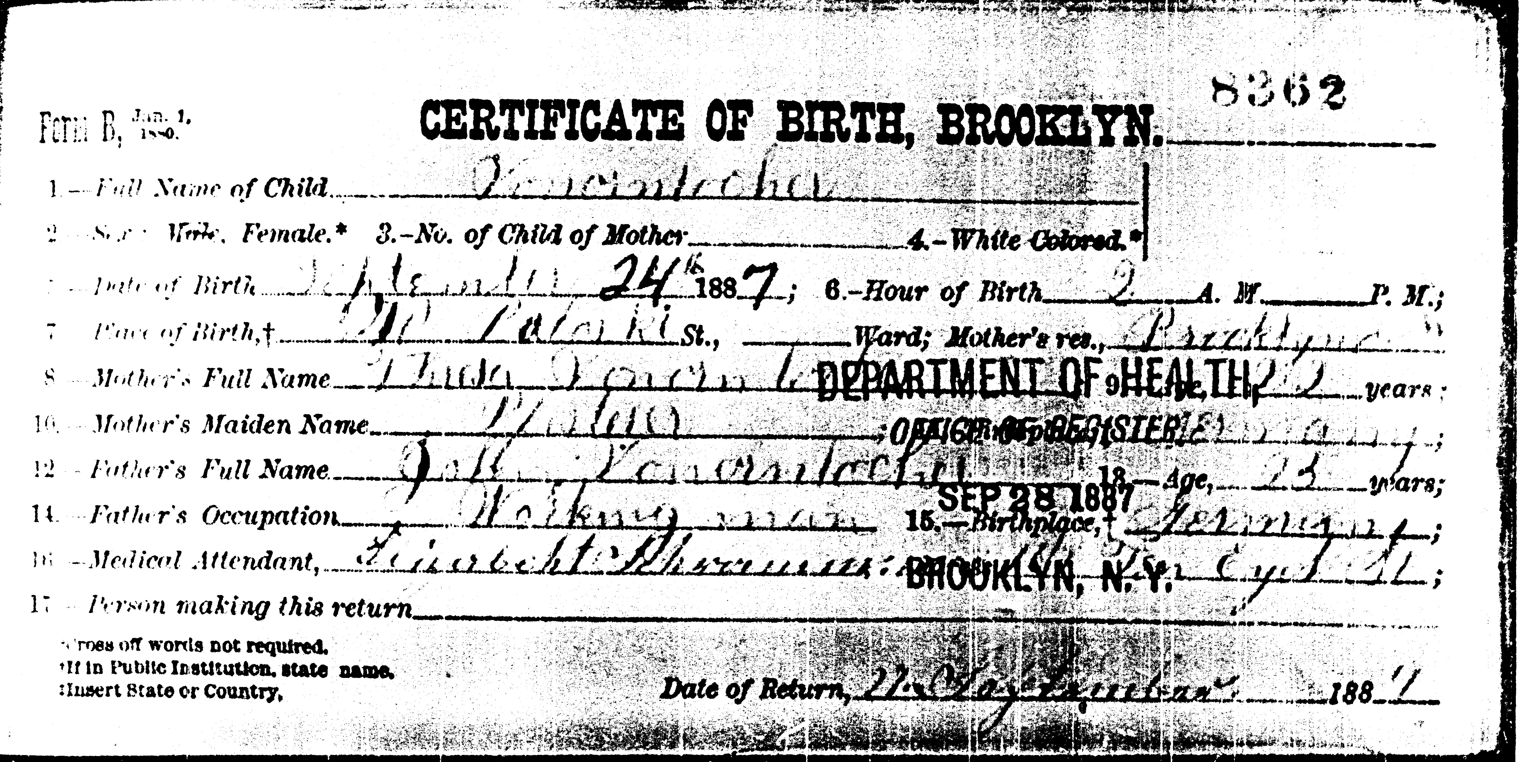| Surname Given Name Month Day Year County Certificate Hurst Edward J Jul 26 1905 Kings 5936 VonLocker Anna Jul 26 1905 5936 Kings |