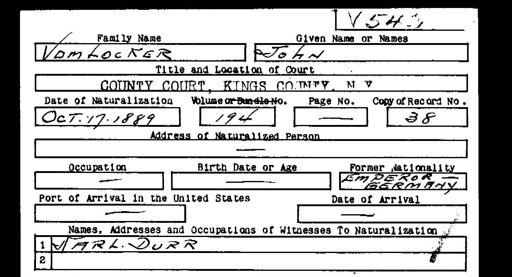 | Surname Given Name Age Month Day Year Certificate County Born Number Vornlocker John 34 y Oct 29 1896 19326 Kings 1861 - 1862 |