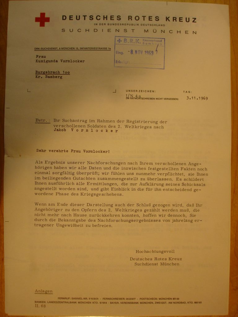 | Jakob Vornlocker born 08.03.1865 Burgebrach House 100 Father - Peter Vornlocker Mother - Regina Mueller |