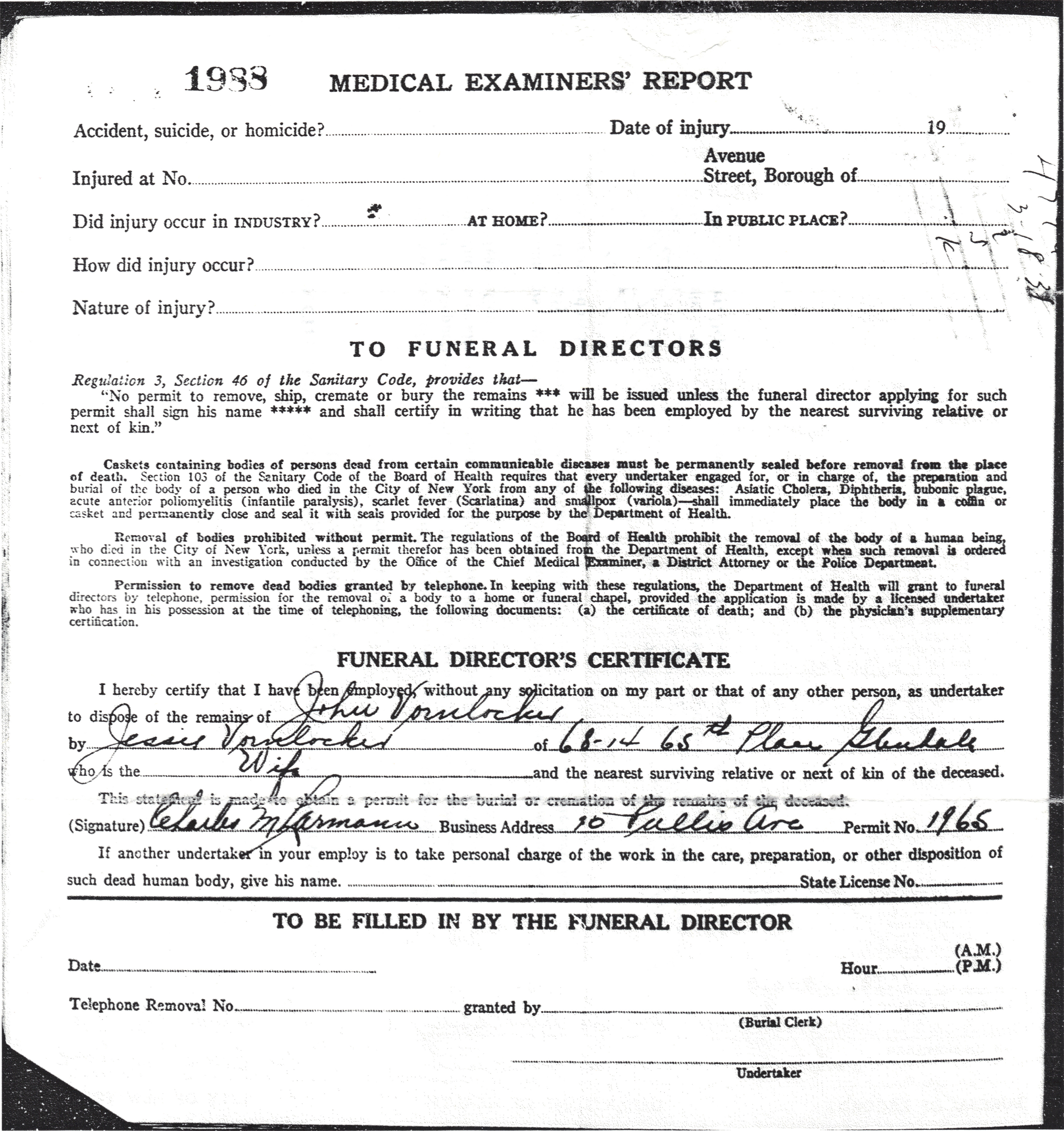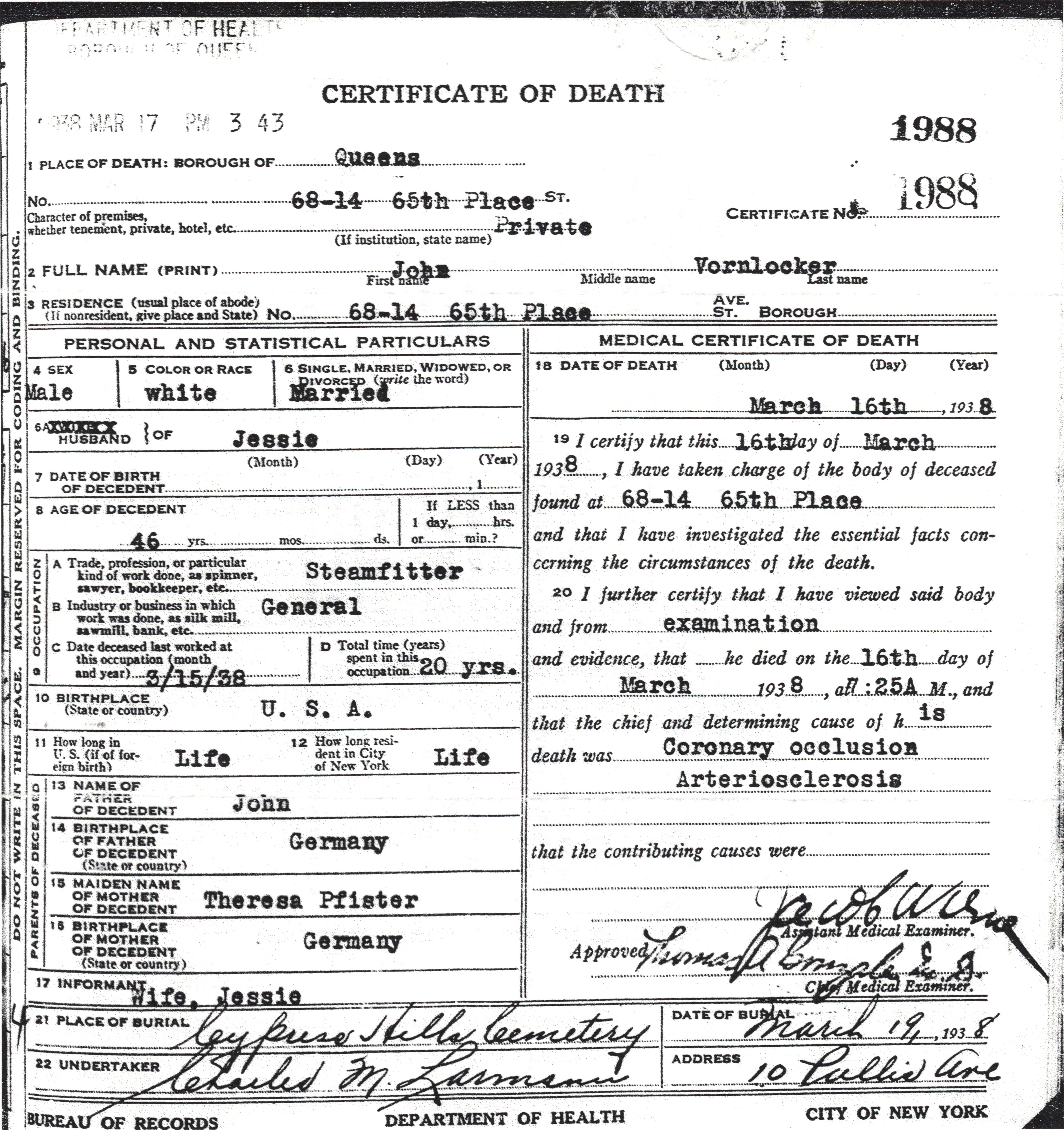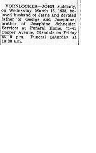 | Surname Given Name Age Month Day Year Certificate County Born Number Vornlocker John 46 y Mar 16 1938 1988 Queens 1891 - 1892 |