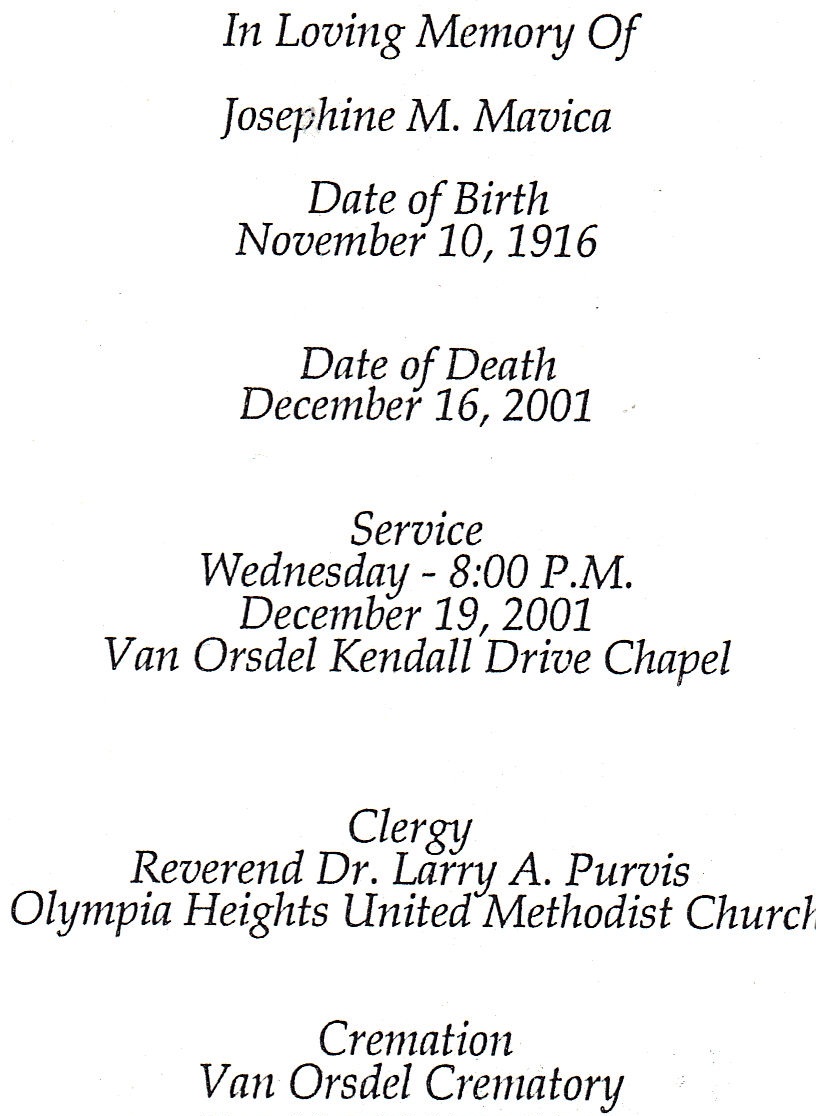 | Name: Josephine M. Mavica SSN: 111-10-4169 Last Residence: 33173 Miami, Miami-Dade, Florida, United States of America Born: 10 Nov 1916 Died: 16 Dec 2001 State (Year) SSN issued: New York (Before 1951) |